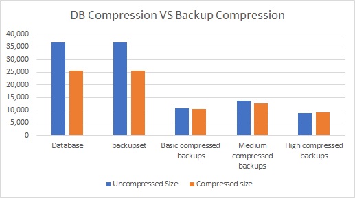 ** Bottom line - Compressing the data in the database saved on the uncompressed backupsize. Once the backupset is compressed the final size is about the same.